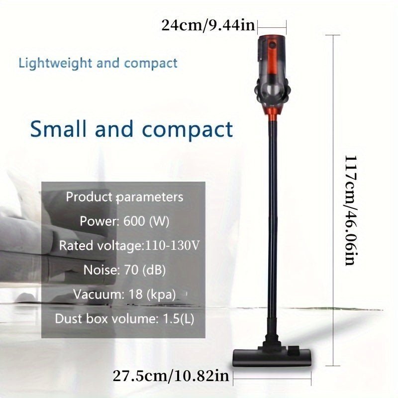110V Vacuum Cleaner. 25KPA Wet And Dry 600W High Power Vacuum Cleaner. Portable Household Low Noise Handheld Vacuum For Pet Hair. Hard Floor And Carpet. 4-in-1 Lightweight Handheld Rod Vacuum Cleaner